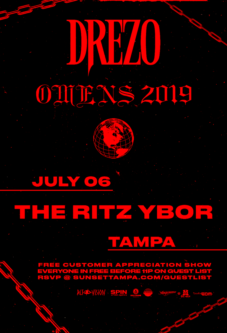 DREZO – Free Guest List – Sunset Saturdays at The RITZ Ybor – 7/6/2019