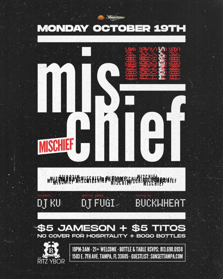 Mischief Mondays with Special Guest DJ FUGI at The RITZ Ybor – 10/19/2020
