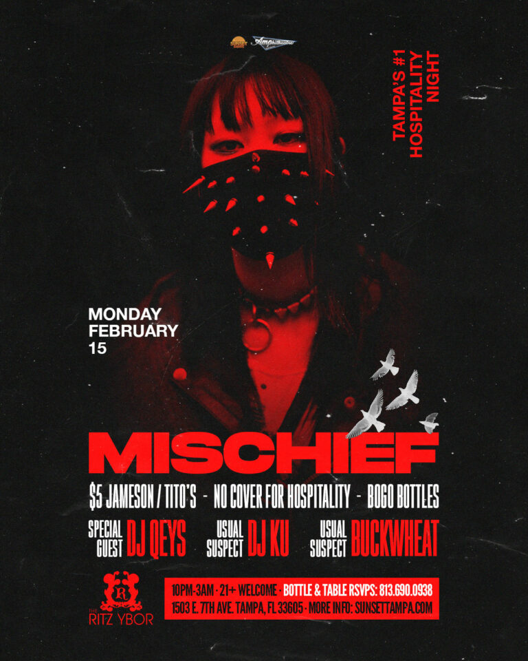 Mischief Mondays with Special Guest DJ QUEYS at The RITZ Ybor – 2/15/2021