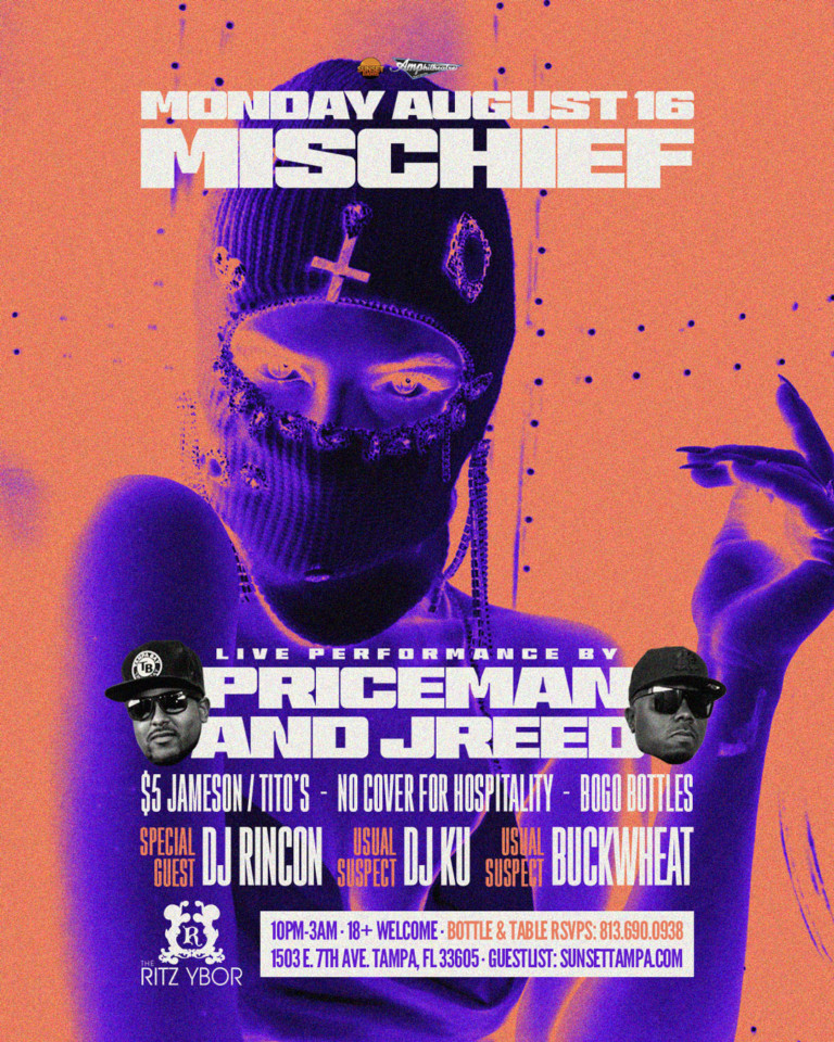 Mischief Mondays with Special Guest DJ Rincon at The RITZ Ybor – 8/16/2021