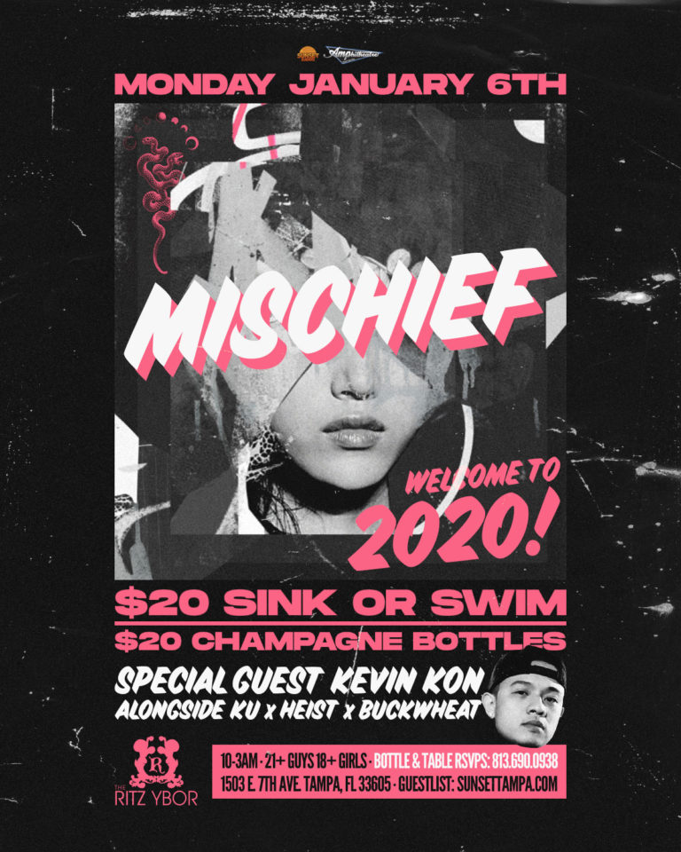 Welcome to 2020 – $20 Sink or Swim – Mischief Mondays at The RITZ Ybor – 1/6/2020