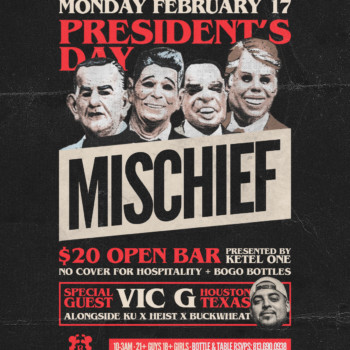 President’s Day – $20 Open Bar – Mischief Mondays at The RITZ Ybor – 2/17/2020