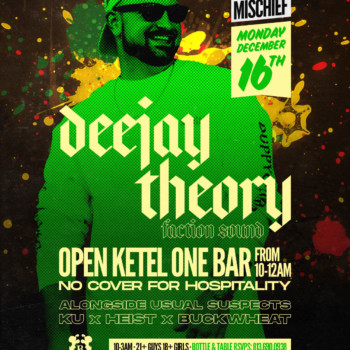 Mischief Mondays at The RITZ Ybor – Open Ketel One Bar – Special Guest : Deejay Theory – 12/16/2019
