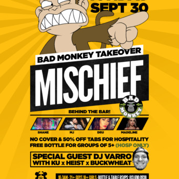 Mischief Mondays – Bad Monkey Takeover with Special Guest DJ Varro at The RITZ Ybor – 9/30/2019