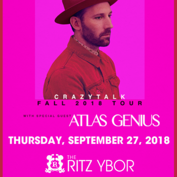 Mat Kearney CRAZYTALK Fall Tour 2018 w/ Atlas Genius at The RITZ Ybor – 9/27/2018