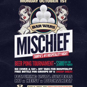 BAR WARS – $500 Beer Pong Tournament – Mischief Mondays at The RITZ Ybor – 10/1/2018